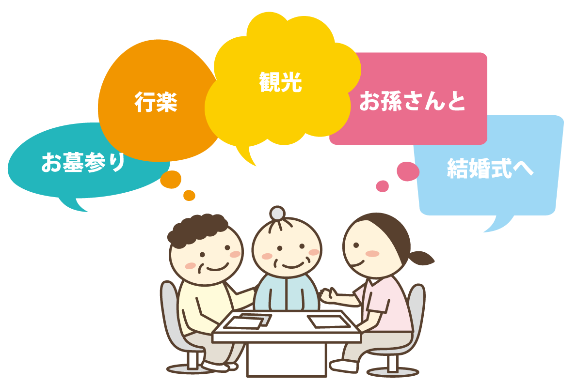 また、看護が必要な方には訪問看護師も同行が可能です。お気軽にご利用ください。