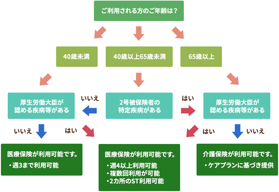 一般病院、回復期リハビリ病棟などを退院され通院が困難となりご自宅で引き続きリハビリを続けたい方。